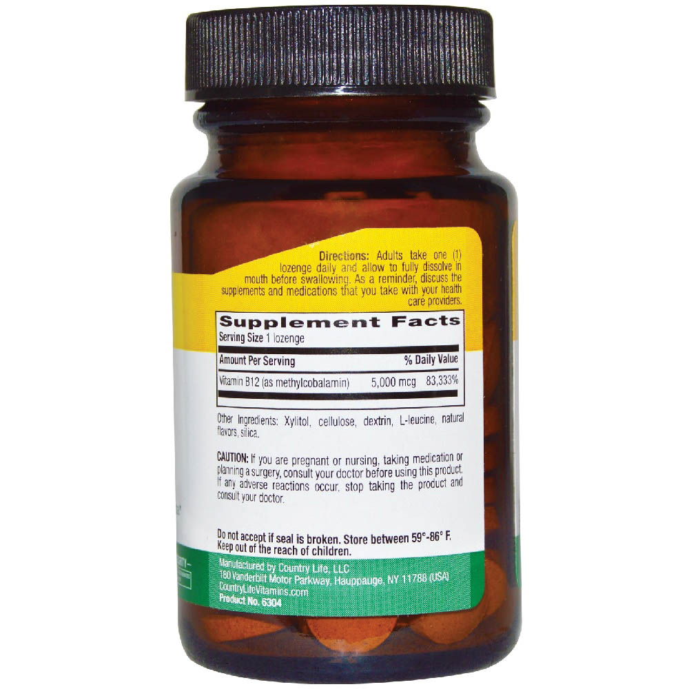 COUNTRY LIFE METHYL B12 5000 MCG CHERRY FLAVOUR LOZENGES 60'S