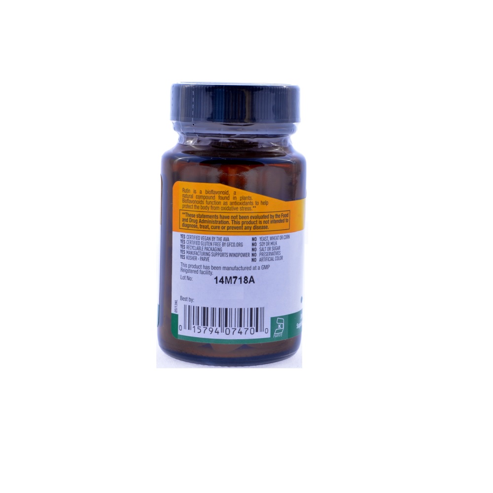 Rutin is a bioflavonoid, a natural compound found in plants. Bioflavonoids function as antioxidants to help protect the body from oxidative stress. This product does not contain soy, wheat, milk, gluten, salt, sugar, preservatives, artificial colour, GMOs