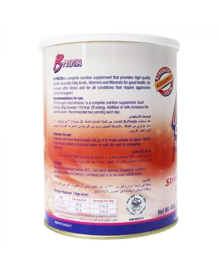 B-Protin Strawberry Powder is a complete nutrition supplement that provides high quality protein, essential fatty acids, vitamins and minerals for good health.