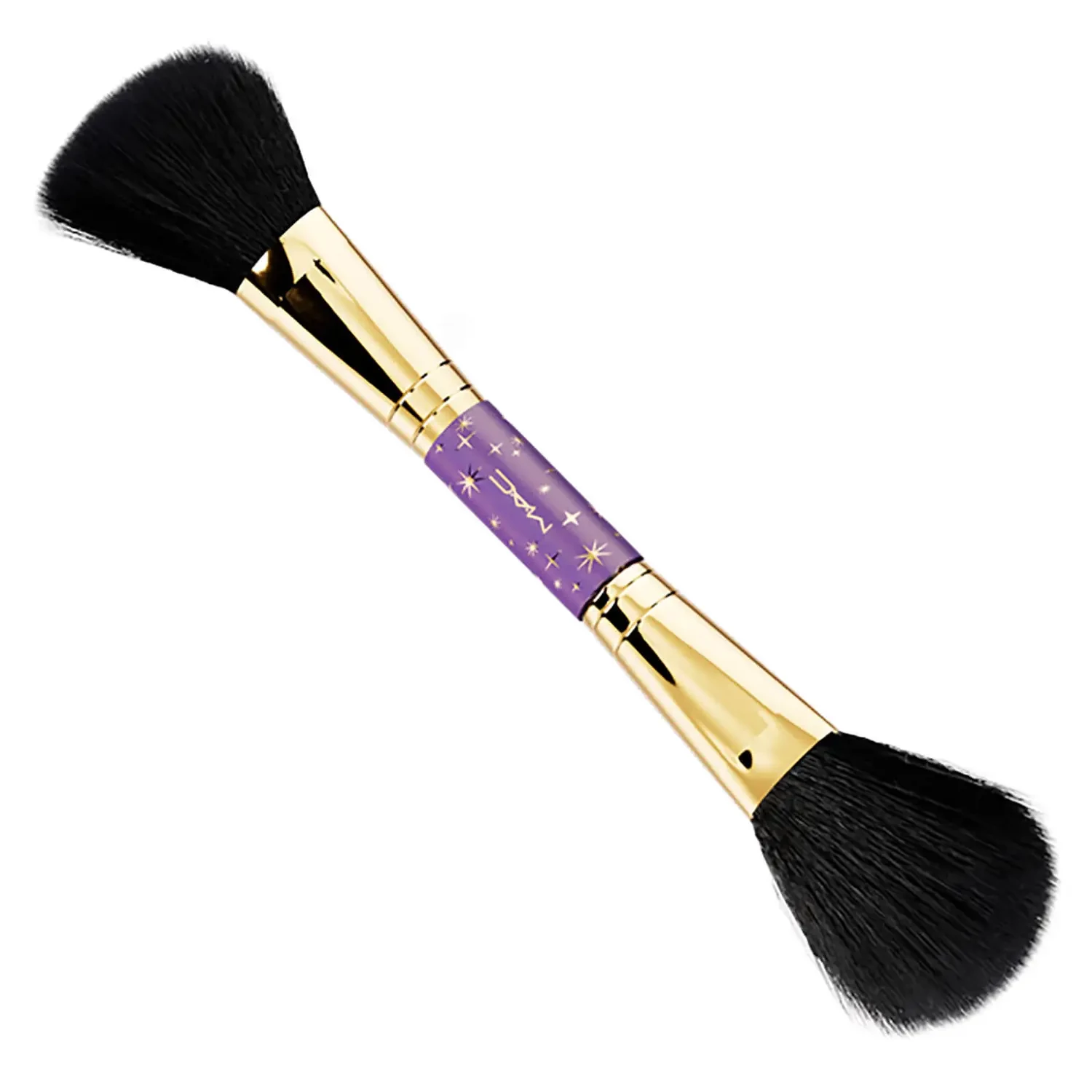 Create out-of-this-world looks with this dual-ended face brush in a limited-edition, astral-inspired design. Use the full, rounded shape of the 129SES Brush to broadly apply all cheek or face powders by either sweeping, pressing, patting or buffing the product onto skin for sheer-to-medium coverage that’s smooth and well-blended. Flip the brush and use the large, angle-shaped 168SES Brush to expertly apply any form of blush, highlighter, bronzer or contour product to the desired area of the face. Its rounded and sloped edge with soft and firmly bundled fibres are perfect for hugging the shapely contours of the face, resulting in a smooth and polished finish with medium colour coverage. M·A·C professional brushes are hand-sculpted and assembled using the finest quality materials. Our 100%-synthetic brushes incorporate the latest innovations in fibre technology for superior performance and improved longevity.