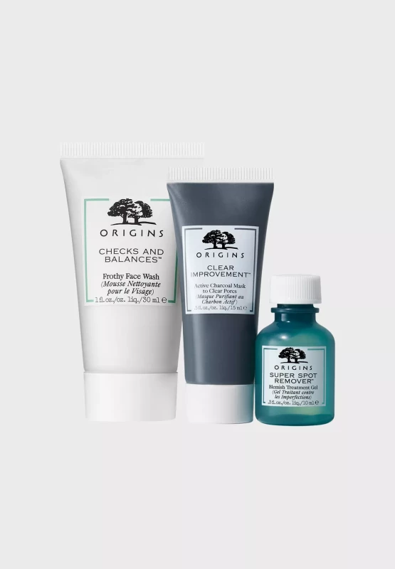 A trio of our favorite blemish-fighting essentials—including our #1 cleanser, charcoal mask and full-size spot treatment. Clears the way for oily skin types. Frothy Face Wash rinses away impurities and excess oils that can lead to blemishes; our Active Charcoal Mask smooths the look of skin and purifies pores of dirt, surface oils and environmental pollutants; and Super Spot Remover™ helps fight blemishes, on-the-spot.
