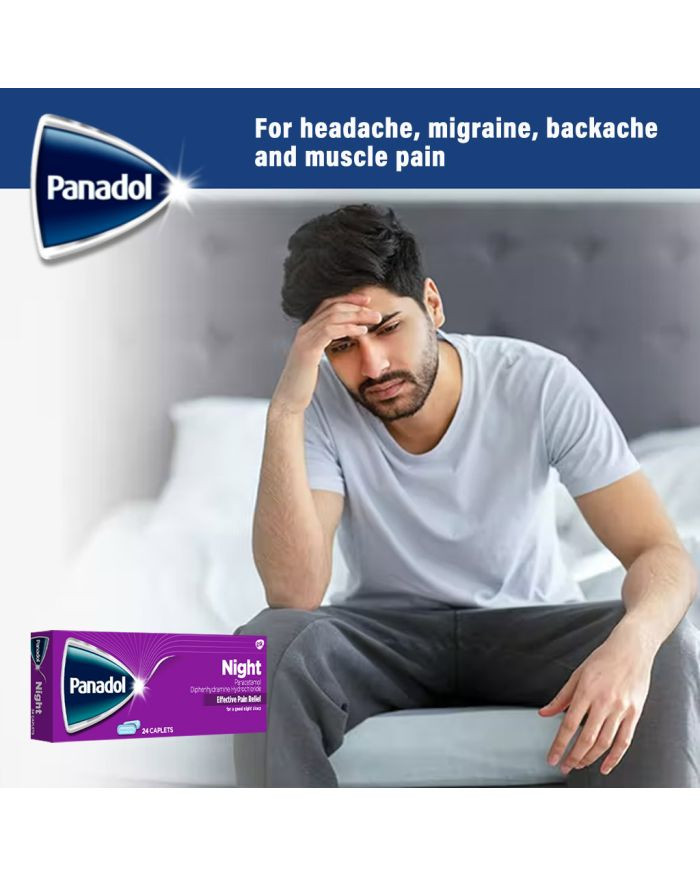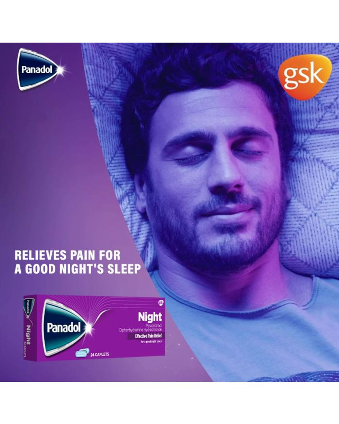 Panadol Night Tablets contains two active ingredients, 500 mg of Paracetamol which is an analgesic (a pain reliever which relieves aches) and antipyretic (reduces body temperature when you have a fever) and 25 mg of Diphenhydramine hydrochloride, an antihistamine with additional sedative properties.