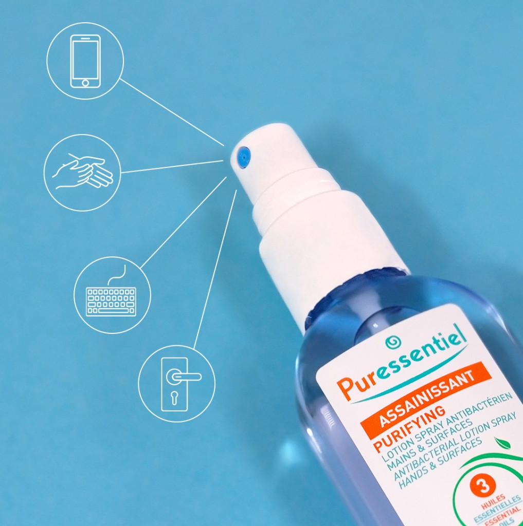 How to Use Puressentiel Purifying Antibacterial Lotion Spray Hands & Surfaces with 3 Essential Oils 80ml