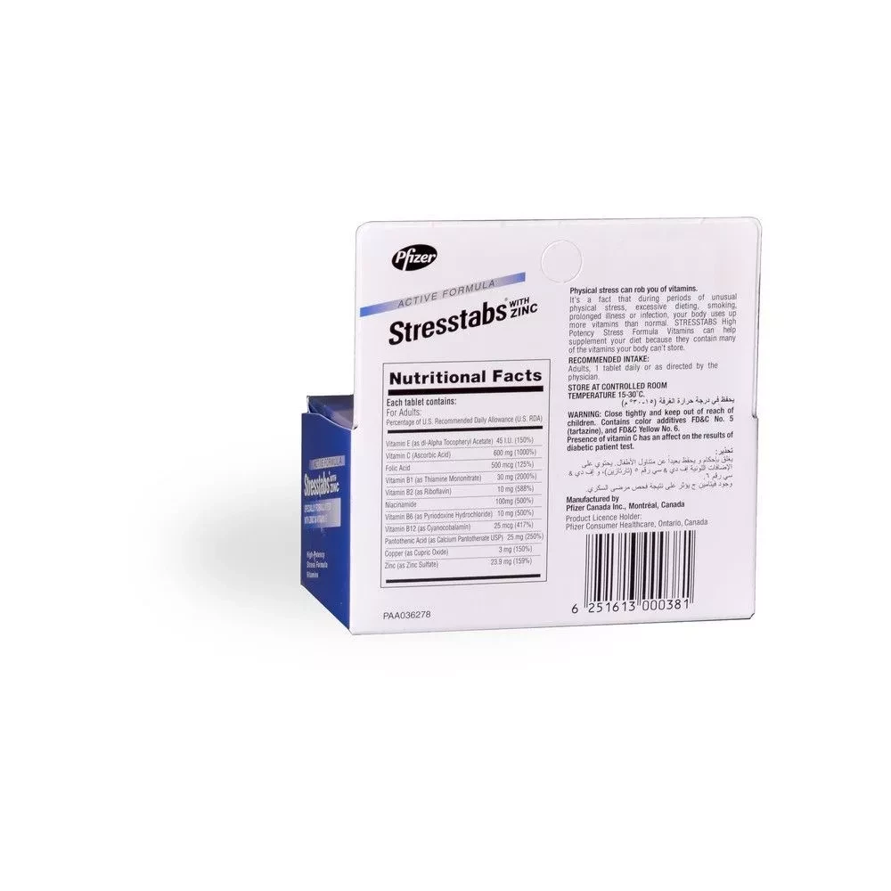 Stresstabs with Zinc 30's is a comprehensive multivitamin and mineral supplement designed to combat the effects of stress and support overall well-being. Packed with essential nutrients, these tablets are formulated to provide a convenient solution for individuals facing high-stress lifestyles or needing extra nutritional support during demanding times.